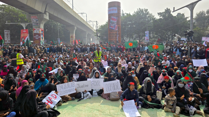 ইনকিলাব মঞ্চের শহীদ মুখপাত্র শরীফ ওসমান হাদির হত্যার বিচারের দাবিতে রাজধানীর শাহবাগ মোড়ে অবস্থান কর্মসূচি চলছে।