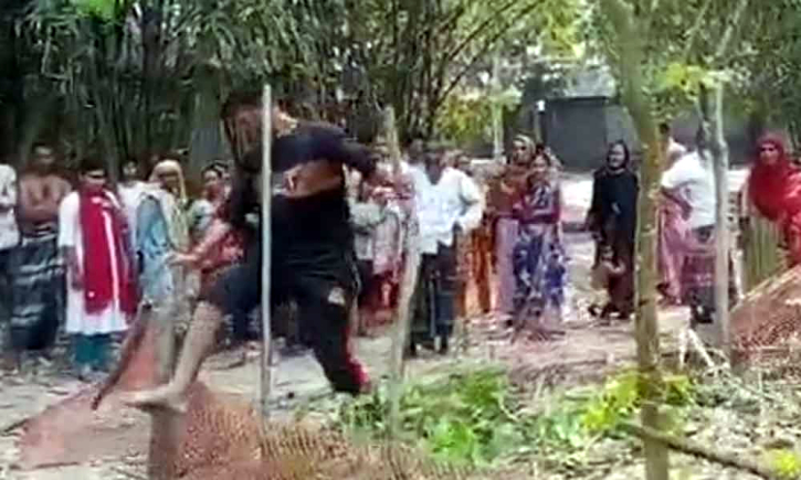 ঘটনার ৪৮ সেকেন্ডের একটি ভিডিও গতকাল সন্ধ্যায় সামাজিক যোগাযোগমাধ্যম ফেসবুকে ছড়িয়ে পড়ে। ভিডিওতে দেখা যায়, কবরের চারপাশে বাঁশের খুঁটি ও প্লাস্টিকের জাল দিয়ে ঘেরা অবস্থায় কবরটি রাখা হয়েছে। কালো প্যান্ট ও ফুলহাতা গেঞ্জি পরা এক যুবক কখনো লাঠি দিয়ে, কখনো পা দিয়ে কবরের বেড়া ভাঙছেন এবং গালিগালাজ করছেন। কবরের বেড়া ভাঙচুর করে তছনছ করার পর তিনি শান্ত হন।