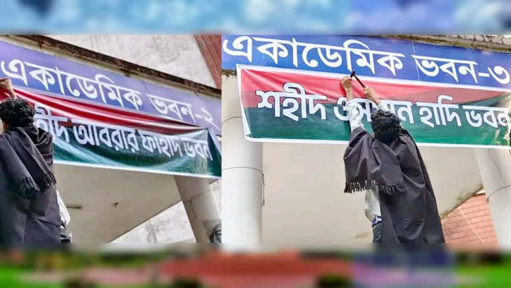 সোমবার (২২ ডিসেম্বর) বিকেলে বিশ্ববিদ্যালয়ের একাডেমিক ভবন-৩ এর নাম পরিবর্তন করে শহীদ শরীফ ওসমান হাদি ভবন এবং একাডেমিক ভবন-২ এর নাম শহীদ আবরার ফাহাদ একাডেমিক ভবন ঘোষণা করা হয়। এ সময় সংশ্লিষ্ট ভবনে ব্যানার টানিয়ে দেন শিক্ষার্থীরা।