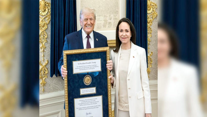 বার্তা সংস্থা রয়টার্সের এক প্রতিবেদনে বলা হয়েছে, বৃহস্পতিবার মাচাদো আনুষ্ঠানিকভাবে তার নোবেল পদকটি ট্রাম্পকে উপহার দেন। এ সময় ট্রাম্প তাকে ধন্যবাদ জানান। হোয়াইট হাউস প্রকাশিত এক ছবিতে দেখা যায়, সোনার ফ্রেমে বাঁধানো পদকটি ট্রাম্পের হাতে তুলে দিচ্ছেন মাচাদো। হোয়াইট হাউসের এক কর্মকর্তা জানান, ট্রাম্প পদকটি নিজের কাছেই রাখতে চান।