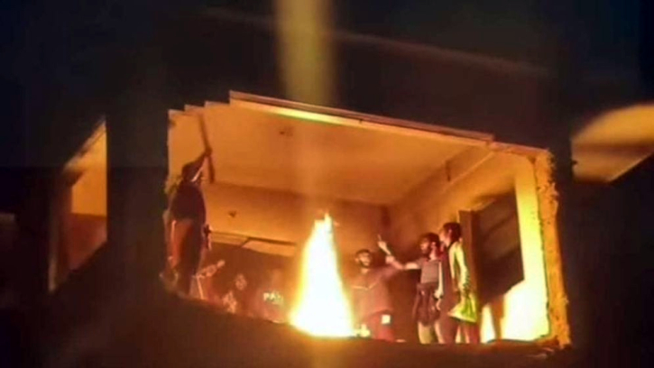ধানমন্ডি ৩২ নম্বরে আবার আগুন দিল ছাত্র জনতা