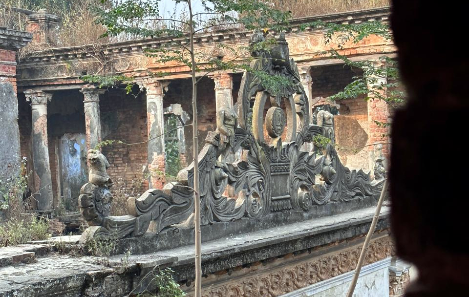 ভবনের সামনেই বিশাল প্রবেশদ্বার আর তার উপরে দৃষ্টিনন্দন কারুকাজ। গথিক স্টাইলে নির্মিত ভারী পিলারের উপরে দাঁড়িয়ে আছে প্রায় সাড়ে তিনশো কক্ষবিশিষ্ট এই প্রাসাদটি। সাত আঙ্গিনাবিশিষ্ট এই প্রাসাদের ভিতর কোনদিকের ভবন তিনতলা আবার কোনদিকে চারতলা। একতলা থেকে আরেকতলায় যাবার জন্য রয়েছে চুনসুরকি নির্মিত প্যাচানো সিড়ি। নিচতলার ঢোকার মুখের ঘরটির মেঝেতে সিমিন্টের মিনাকারী কাজ আর বাকি স্থান বলতে গেলে সবটাই এতটাই ক্ষতিগ্রস্ত যে সঠিক নকসা আর চোখে পড়ে না। প্রাসাদের অদূরেই একটি গুম্বুজ আকৃতির স্থাপনাও চোখে পড়ল, তবে সেটি প্রার্থনাঘর ছিল কিনা তা জানা গেল না। শোনা যায়, প্রাসাদটিতে একটি স্বর্ণ নির্মিত আর একট আইভরি নির্মিত সিংহাসন ছিল। ব্রিটিশরা সিংহাসন দু’টি নিয়ে যায়।